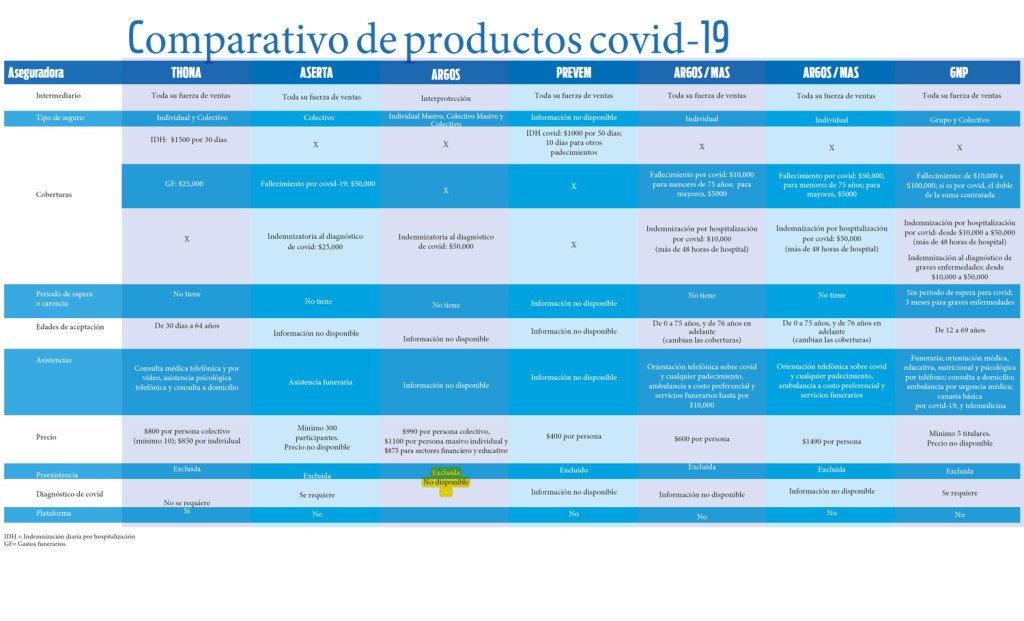 Esta herramienta no pretende concentrar un análisis exhaustivo de las condiciones contractuales y las posturas que existen en el país en torno al manejo de coberturas de gastos médicos durante la pandemia, sino presentar los nuevos productos creados para hacer frente a esta.