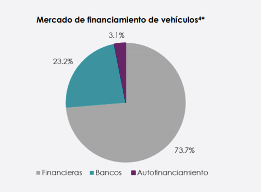 La principal fuente de financiamiento para la adquisición de vehículos fueron las instituciones financieras, con un 73.7% de participación y un aumento de 775 pb respecto al mismo periodo de 2019. El financiamiento bancario se posicionó como la segunda fuente, pero registró una disminución de 677 pb en comparación con los primeros nueve meses del año anterior.