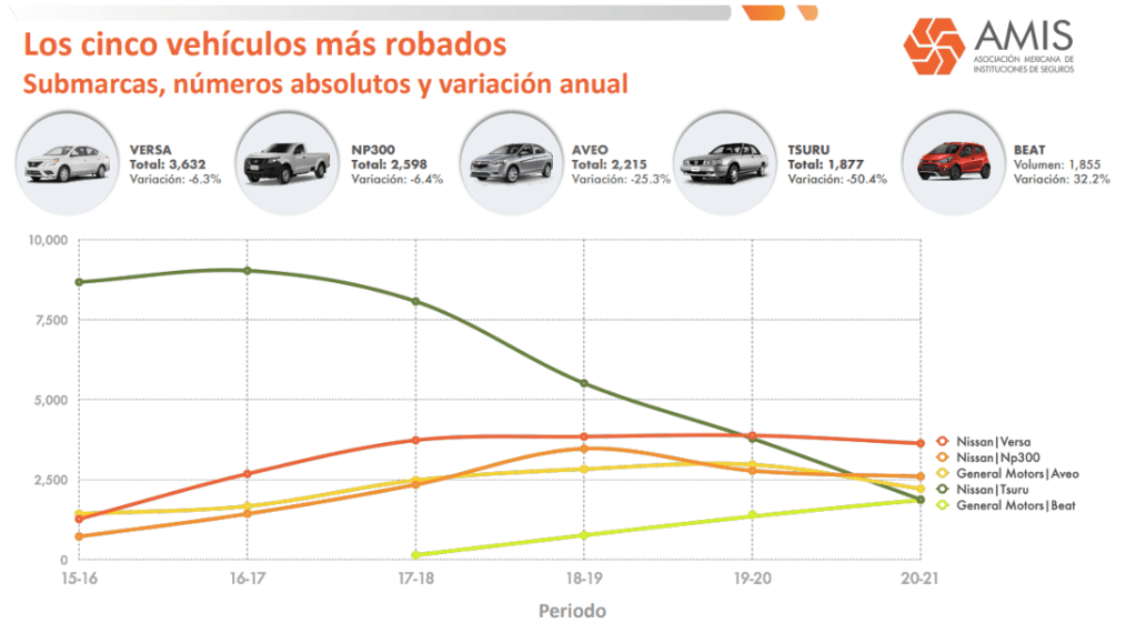 - Nissan y General Motors concentran la tercera parte del total de vehículos robados