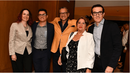 Por otro lado, Seguros Patrimonial reconoció a sus dos entrañables amigos de Grupo ARFiL, Enrique Loyola Ahedo y Silvia González Meza, quienes por 20 años ininterrumpidos han brindado a la empresa los servicios de evaluación de riesgos en la cartera de valores. Antes de dar paso al grupo que amenizó el Aniversario de los 20 Soles, Jorge Saldívar cortó de manera simbólica el pastel.