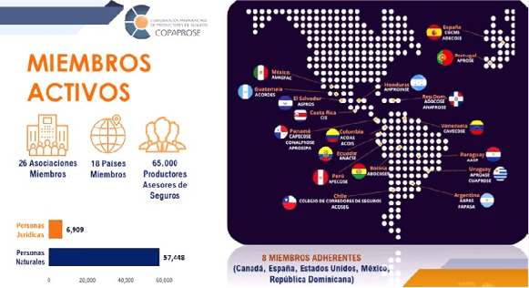 La presidenta de la Confederación Panamericana de Productores de Seguros (Copaprose), Elisabeth Vogt, recordó que esta asociación nació en 1967 para representar a los productores de seguros y fianzas de Iberoamérica, fomentar su desarrollo y promover el mejor cumplimiento de su función social. La Copaprose for- ma parte de la WFII, donde es la voz que expresa las necesidades de 18 países miembros, 28 asociaciones y 8 miembros adherentes que aportan al gremio herramientas tecnológicas y de capacitación.