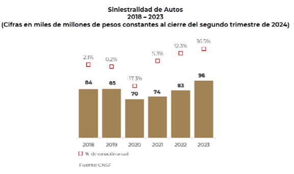Entre 2018 y 2023, la siniestralidad mostró un aumento del 3.4%.