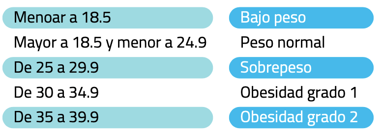 La obesidad es un trastorno crónico caracterizado por un exceso de grasa corporal que afecta la salud de manera significativa. La Organización Mundial de la Salud (OMS) define la obesidad como un índice de masa corporal (IMC) igual o superior a treinta unidades. El IMC se calcula dividiendo el peso de una persona en kilogramos entre el cuadrado de su altura en metros. En la tabla se muestra qué indica cada rango de IMC.