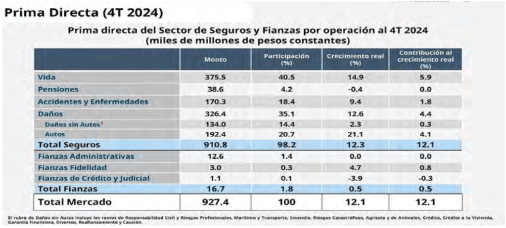 ¿Las aseguradoras están evolucionando al ritmo necesario para adaptarse a una sociedad cambiante manteniendo no solo el nivel alcanzado, sino también el crecimiento sostenido del sector? ¿El no adaptarse a una sociedad cada vez más cambiante limita el crecimiento de la industria aseguradora? Para responder a estas preguntas, considero importante partir de los datos publicados por la Comisión Nacional de Seguros y Fianzas (CNSF). De acuerdo con estos, el crecimiento del sector asegurador en 2024 fue del 12.1% con respecto a 2023 (ver tabla).